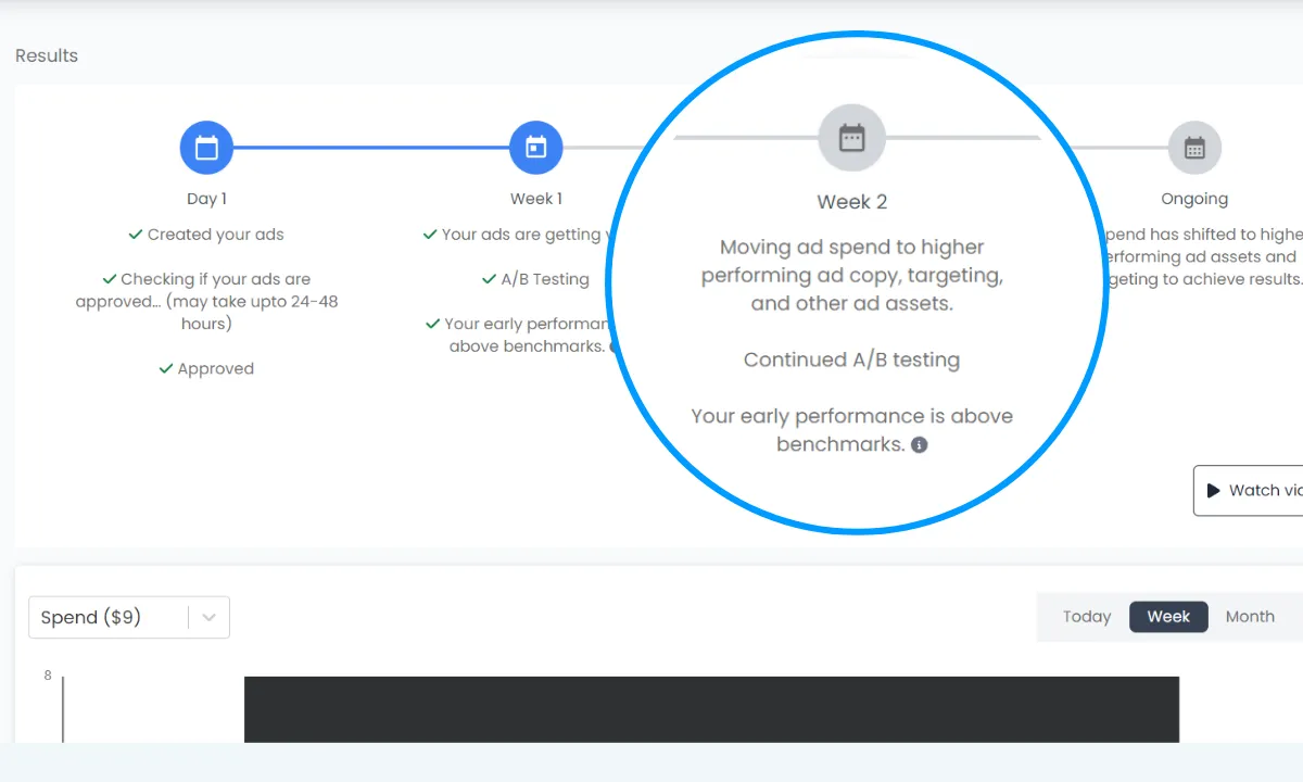 This tech advantage means we can launch everything—ad campaigns, landing pages, email sequences, and automations—in just 30 days, while traditional agencies may take months. Plus, our AI-driven platform ensures your campaigns are continually optimized in real time, without the need for expensive manual oversight. You don’t have to worry about hiring a full team or paying high agency fees.